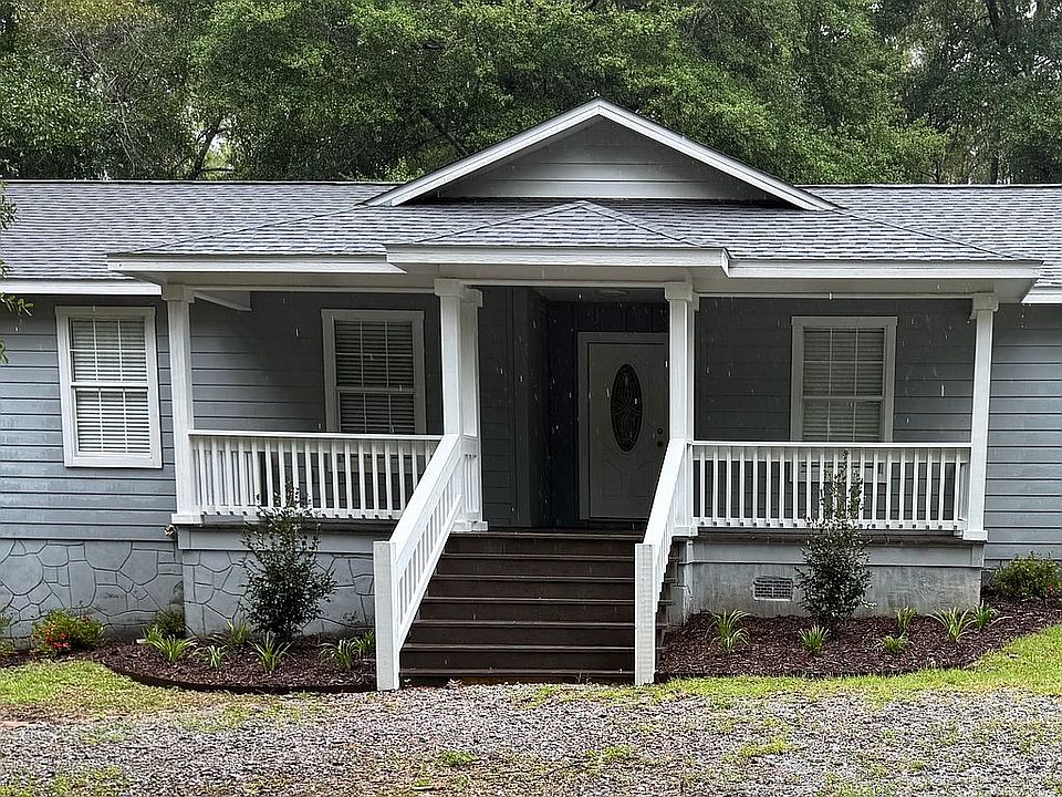 It’s like country living, but only five minutes from the city. It is wooded acreage with about 1 acre cleared with this house on it. It is close to everything! Shopping, schools, clinics, hospitals, restaurants, and churches. Easy access to the new Pea Ridge connector. Freshly updated with paint, new flooring, new front deck, steps, rear deck, new hot water heater, and roof that is about two years old.