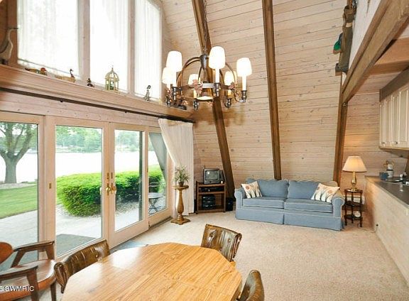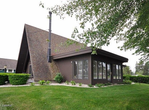 This charming A-Frame offers a one of a kind view of Portage Lake with over 200' of water frontage from its very own peninsula. A completely rebuilt seawall is the only thing between you and this 510 acre all sports lake. The home features 2 bedrooms and 1 baths. There is a master bedroom on the main floor and a third room currently being used as a study that could be converted to a third bedroom. The upstairs loft bedroom overlooks the living room providing a spectacular view of the water from large pane windows. For a more full circle effect, you can enjoy yourself on the all seasons porch surrounded by spectacular scenery on three sides. The kitchen has a built-in microwave, stainless steel fridge, food pantry, and dishwasher. ALL appliances included in the sale! In addition, this home includes a Generac Generator, water softener and a wood-burning stove. Call Nikki Hatfield at 269-720-1215 or e-mail nikki@homesmi.com.