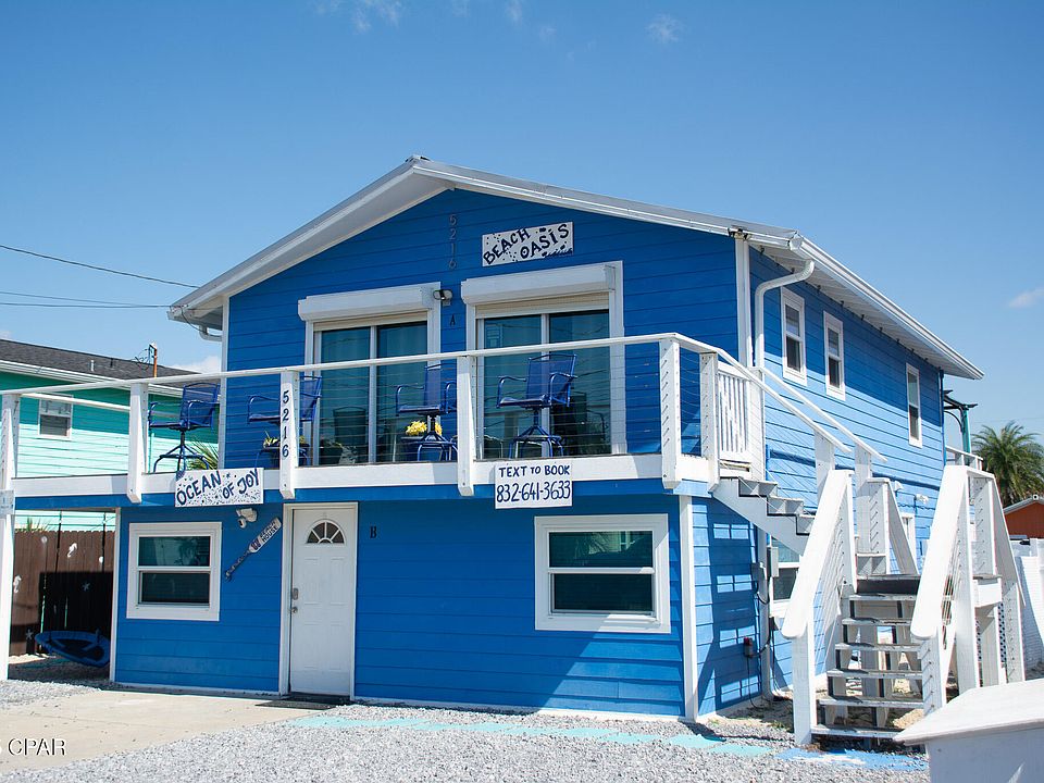The home includes two spacious 2-bedroom units and one cozy 1-bedroom unit, offering flexible living or rental options. The downstairs 2-bedroom unit even includes built-in bunks, perfect for accommodating larger families or vacation guests. Upstairs, enjoy both front and back deck areas where you can catch a peek-a-boo view of the Gulf and coastal breezes.