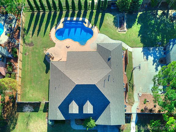 COUNTRY LIVING @ 91ST & YALE! .57 ACS in Jenks School District. 3 Bds, 2 baths, 4 car garage fully bricked open floor plan. Lots of upgrades - new roof & gutters, wood floors, heated/cooled detached garage, basketball goal/court, remodeled infinity pool, new exterior windows & doors, new exterior paint, all new lighting, in-ground storm shelter, tons of storage, granite thru out, tankless water heater, spray in attic insulation, outdoor rocked fireplace, and so much more! Front and back of property border vacant open space fields - walk to Hunter Park, Starbucks, or Whole Foods. Everything a stone's throw away! Call today to book your private showing of this RARE find!