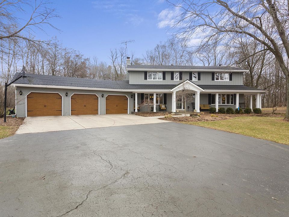 Welcome to an oasis of privacy, space, and beauty! This expansive colonial style home has been completely redone and updated with beautiful finishes and quality materials, while maintaining the cozy feel of home. Even the exterior has had a facelift! The kitchen has high-end stainless appliances and solid surface countertops. Most notable of the upgrades is the lower level family room with a home theater system framed in with beautifully crafted custom oak details and complemented with a 3-sided brick fireplace. This home sits on a wooded lot of just over 3 acres, which makes the outdoor space as equally inviting as the inside. With shopping, schools, and major golf courses just minutes away, this home is a dream come true!
