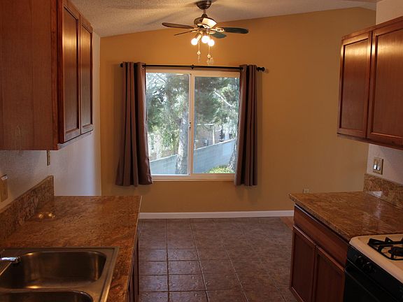 Very clean home with upgraded kitchen and granite counters. One car garage + one reserved outdoor parking space. Master bedroom has a big walk in closet. Laundry room has keyed access and is shared with three other homes. This upstairs home is all on one level and has nice views. Tenant pays for utilities