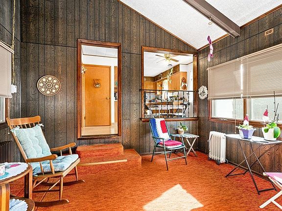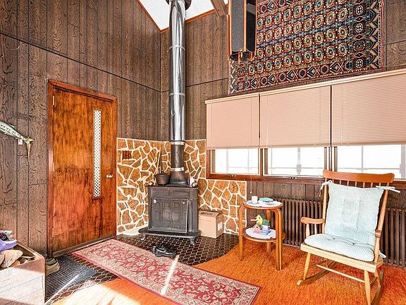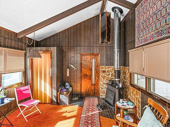 - Description: Breezeway room with woodstove and cathedral ceiling.