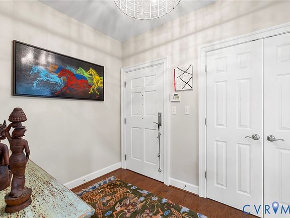 Welcome to effortless, maintenance-free living in Richmond’s award-winning Monument Square! This beautifully maintained 2-bedroom, 2.5-bath, second-floor condo offers 1,662 sq ft of light-filled, single-level living with elegant details throughout AND TWO GARAGE PARKING SPACES!!! Step inside to a welcoming foyer with a powder room and coat closet that leads to a spacious, open-concept layout. The gourmet kitchen is truly the heart of the home, featuring granite countertops, stainless steel appliances, gas cooking, a pantry, and peninsula seating that flows seamlessly into the dining and living areas—perfect for both everyday living and entertaining. The expansive living room is enhanced by a gas fireplace, custom millwork, hardwood floors, and a wall of windows that bathe the space in natural light. Just off the living room, a versatile sunroom or office opens to a private balcony—ideal for enjoying morning coffee or evening cocktails. The luxurious primary suite is a true retreat with two walk-in closets and a spa-like en suite bath boasting a double vanity, soaking tub, and separate tile shower. The generously sized second bedroom features a built-in Murphy Bed and its own private en suite bath, offering comfort and privacy for guests and the ultimate flexibility for everyday use. A laundry room with extra storage completes the floor plan. Additional highlights include high end window treatments throughout, elevator access for your convenience and generator dedicated to building. Monument Square residents enjoy resort-style amenities including a clubhouse with entertaining spaces, saltwater pool, fitness center, community room, grilling/dining areas, and beautifully landscaped grounds—all with City Living and Henrico County taxes. Ideally located just minutes from Willow Lawn, Libbie & Grove, and downtown Richmond, this home combines timeless style, comfort, and unmatched convenience. Don’t miss this rare opportunity to own in one of Richmond’s most sought-after communities!