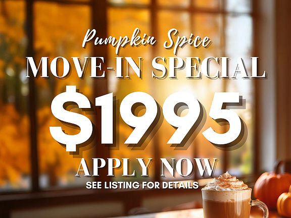 Ready for Immediate Move-In! PUMPKIN SPICE MOVE-IN SPECIAL! $1995 MOVE-IN, if moved in on or before 11/20/2025 (latest possible move-in date)! Move-In special includes the refundable security deposit, admin fee and ONE WEEK FREE RENT! Prorated rent is due one week after move-in! 1st full month of rent is due on DEC 1ST! (Animal fees are not included in this move-in special and are due at move-in if applicable)