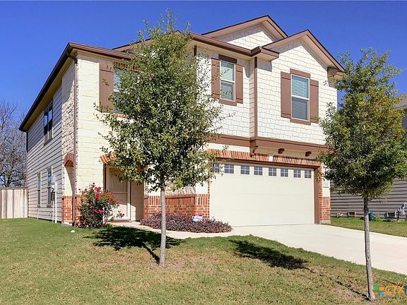 Convenience and accessibility meet privacy and comfort in this totally upgraded 3-bedroom 2.5 bath almost new construction home in the Parklands neighborhood. The adorable cottage design and stone and brick exterior with covered front porch make you feel like you are HOME. Leave the front door open and enjoy the light through the glass storm door on those perfect Texas mornings. Laminate flooring throughout the spacious living/dining area open to the chef's kitchen with upgraded counters and cabinetry, gas cooking, eat-in kitchen bar, and HUGE walk-in pantry. The staircase just off of the living area offers designer wrought iron handrails and leads to the additional oversized living space on the second floor which separates the primary bedroom from the secondary bedrooms. The large primary suite is crafted with double marble vanities, custom mirror, and ENORMOUS dressing room! Enjoy the peace and quiet from the oversized, covered patio with mature trees and the solitude with no neighbors behind. Located in the fast-growing area between Austin and San Antonio with quick access to I-35 and only minutes south of New Braunfels-perfect location!
