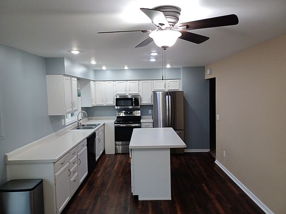 Fenced backyardStainless steel appliancesLuxury vinyl tile