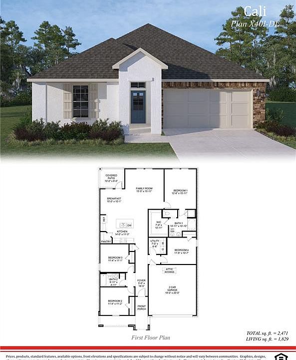 The Cali is a new spacious one story plan with an open floor plan, and a large island open to the family room and breakfast area. Great for entertaining and making lasting family memories. This home boasts lots of room for your family with4 bedrooms, 2 full bathrooms. The kitchen features stainless appliances and a gas range, and a corner pantry.