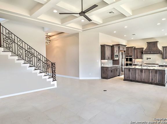 - Two Living Area, Liv/Din Combo, Breakfast Bar, Pantry, Game Room, Utility Room Inside, 1st Floor Lvl/No Steps, High Ceilings, Open Floorplan, High Speed Internet, Walk-In Closet(s), Master Downstairs, Ceiling Fan(s), Chandelier, Solid Counter Tops, Custom Cabinets, Programmable Thermostat