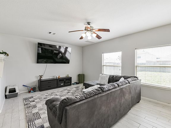 This stunning 2015-built home feels like new with modern upgrades and a smart home system featuring keyless entry and security. The spacious open floor plan is perfect for hosting, with a kitchen built for a chef—boasting ample cabinet space, a large island, a pass-through bar, and new appliances. The wood-look tile flooring adds warmth and elegance.