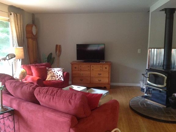Wood burning fireplaceUpdated kitchenWasher and dryerWood stoveCommunity beachLarge private deckPrivate beach