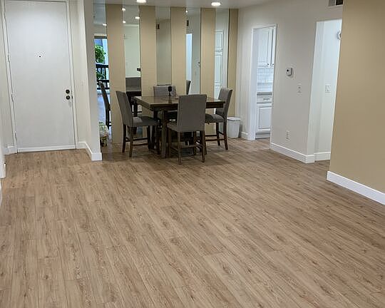 Raintree Condominiums 2 Bed.+ Den. Highly upgraded single level floorplan. Recently remodeled with wood type floors in living room, den and dining area. Carpeting in the bedrooms. Recessed lighting in all rooms. Kitchen has breakfast area. Newer double paned windows. Truly move in condition. Raintree is the most desire able condo community in the area with a large heated pool ,spa and 2 rec. bldgs. Acres of open grounds to walk around and 24 hr. controlled access. Includes Spectrum cable with internet Raintree is a non smoking community. Applicants must have a good credit history and verifiable income. No dogs, cat considered. The HOA charges a $400 move in/moveout fee.