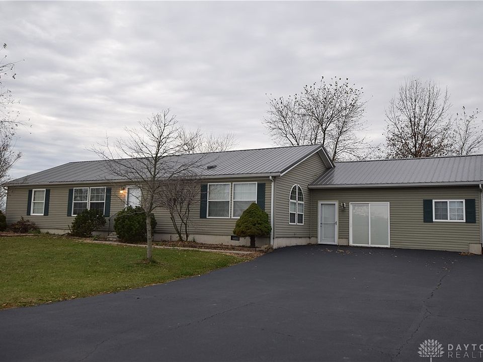 Enjoy country living with your family in this spacious 2,300-square-foot home set on 2.5 acres. Built in 2006, the manufactured house features a roomy eat-in kitchen complete with an island, stainless steel appliances, and ample cabinetry. Each of the three bedrooms is generously sized and includes walk-in closets. The primary bedroom has a full bath with both a shower and tub, which conveniently connects to the laundry room. The attached garage has been turned into a family room equipped with a mini-split system for heating and cooling, as well as a ventless gas wall heater; it could easily be converted back to a two-car garage. (Auditor square footage does not include family room) The main house's electric heat pump was replaced in 2023. A 24x48 pole barn with 14-foot ceilings, constructed in 2010, currently serves as a garage and can accommodate a motor home. About five years ago, the home's roof was upgraded to metal by Amish craftsmen. Additional amenities include a 16x20 enclosed back patio and another enclosed porch measuring 10x24. The property also offers a blacktop driveway and a fenced backyard, ideal for children, pets, or other animals. Conveniently located between St. Paris and New Carlisle within the Graham school district.