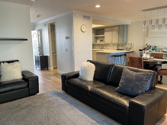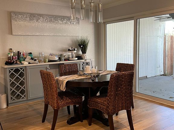 SHOWING SAT FEB 26: 9-10 am Situated in a cozy community. The spacious first floor has a newly painted living room, dining room with built-in bar, stunning new floors, remodeled powder bath, and a gourmet kitchen with freshly painted cabinets, Quartz countertops, and black stainless steel appliances. The second level offers 3 bedrooms including a deluxe master retreat with walk-in closet, secondary closet, and beautifully renovated bath with dual sinks and large walk-in shower. Second floor also has bonus space (additional square footage) that can be used as an office area or den. Enjoy the covered back patio with seating area along with luscious fruit trees. The end unit also allows for direct access to the adjacent grass area outside the back patio gate. Laundry hookups in the garage. The unit has alarm system that can be activated. Trash is included in the rent. NO PETS ALLOWED. Owner pays for HOA which includes trash pickup. Tenants pays for all the other utilities including water, electricity, gas, internet. The unit has alarm system that tenant can get it activated. NO PETS and NO-SMOKING. One car be parked in garage, second one under the front covered area and third parking is for guests. There is no other parking in this complex.