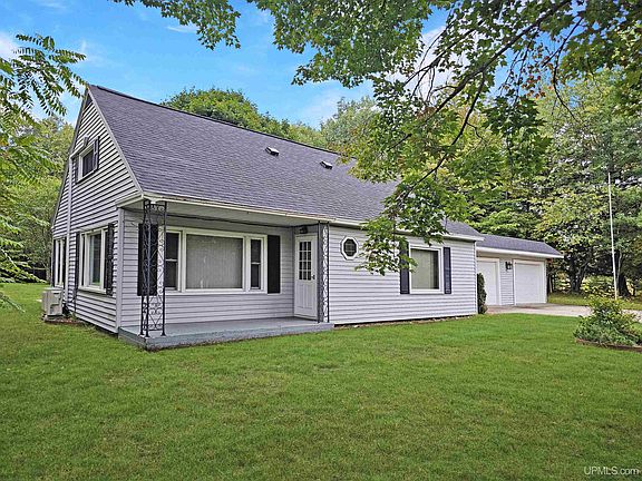 Welcome to this beautifully maintained four-bedroom, one-and-a-half-bath home set on 1.17 acres in Wells Township. The property offers a peaceful setting with mature trees, a spacious lawn, and a paved driveway. Inside, the main level features a main floor bedroom with great natural light through sliding glass doors leading to a cement patio and a half bath attached. This is perfect for enjoying views of the backyard. The large kitchen, separate dining room, and main-level laundry add everyday convenience. The large living room offers plenty of room to entertain with two large picture windows to let the light flood in. Upstairs, you’ll find three additional bedrooms and a full bath. The attached two-car garage provides plenty of storage space, with a mechanical room located just off the garage and breezeway. There are two wall cooling units in the home. There is a small stream that runs on the edge of the property. This home has been meticulously cared for and is ready for its new owner to move right in and make it their own.