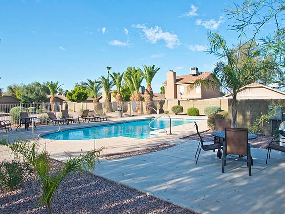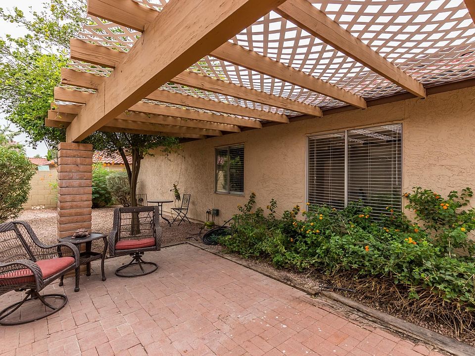 Carve out an incredible life in this fantastic single story home that sits nestled in the culdesac minutes to I 10. Upon entering this courtyard of this detached single level family home, you are greeted with gorgeous tile flooring, soft paint palettes and tons of natural light t/o! The kitchen boasts granite countertops, warm maple wood cabinetry and dining area.The 3 spacious bedrooms offer plenty of room for sleep, study &storage. The covered pergola & spacious patio offers shade and plenty of seating for all! Modern recessed lighting, prior owner remodeled and removed popcorn ceilings and moved duct work to attic for more seamless sight lines. Low maintenance , front yard is taken care of by HOA. Two community pools w/i walking distance, Kyrene Schools. So much for this price!