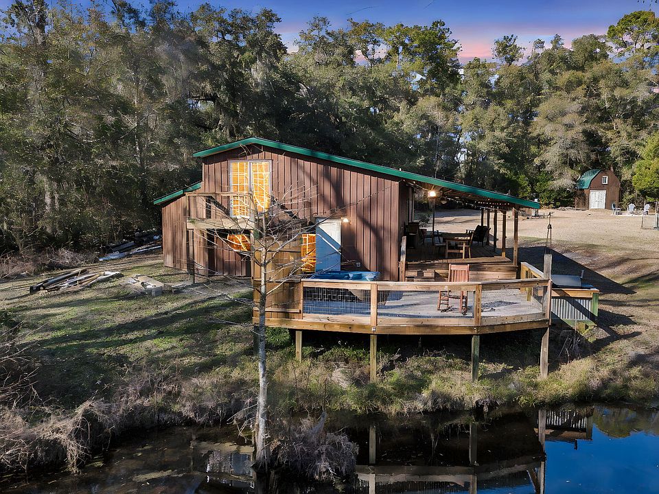 The world is a wild place! Come find your peace in this rare Lowcountry Retreat - Private, Self-Sustaining Sportsman's Paradise tucked away at the end of a secluded driveway. This extraordinary 6-acre estate offers the perfect blend of rural tranquility and modern convenience, just minutes from Johns Island's renowned restaurants and shopping. Designed for those who cherish privacy, nature, and self-sustainability, this custom-built sanctuary is a rare gem in Charleston's real estate landscape.Crafted with longevity in mind, the home's exterior walls, floors, and roof are constructed with high-quality pressure-treated lumber, while a metal roof and siding provide low-maintenance durability. Energy efficiency is paramount, with closed-cell spray foam insulation ensuring year-round comfort. Elevated on a pier and beam foundation over concrete, this home is built to stand the test of time. Underground power lines further enhance the property's clean aesthetic and reliability. Inside, the warmth of hand-hewn hardwood estimated to be 600-800 years old graces parts of the home, adding timeless character. Vaulted ceilings create an airy and spacious ambiance, complementing a well-appointed kitchen designed for gourmet cooking. With two bedrooms, two bathrooms, and a separate utility and laundry room with a utility sink, the layout is as practical as it is inviting. Beyond the home, the estate's outdoor offerings are unparalleled. A massive 800-square-foot deck, custom fire pit, and hot tub invite you to relax while overlooking one of two serene, stocked ponds. One of the ponds is naturally fed by an underground spring, ensuring pristine water year-round. For the avid outdoorsman, a custom walk-up tree stand provides an elevated retreat for hunting or simply observing the abundant wildlife, and a dedicated road leading all the way to the tree stand allows for easy vehicle access. The property is truly self-sustaining, featuring a septic system, private well, irrigated vegetable gardens, and ample land to live off of. A huge attached two-car garage with an attached workshop complete with electricity and plumbing offers versatility, while the heated and cooled bonus room above features a sliding glass door leading to a private porch, perfect for a secluded retreat. A charming loft above the garage adds additional space, and an 8x12 outbuilding with electricity and a second floor offers potential for conversion into an ADU. This is one of the last remaining places in Charleston where you can experience an authentic rural lifestyle without sacrificing convenience. If you're seeking a one-of-a-kind property that embraces privacy, sustainability, and the beauty of the Lowcountry, this estate is calling you home. Additionally, an extra 0.76-acre contiguous lot is available, offering the potential for an added buffer between this and the neighboring property. *Appraisal in hand*