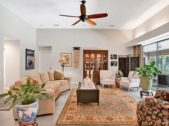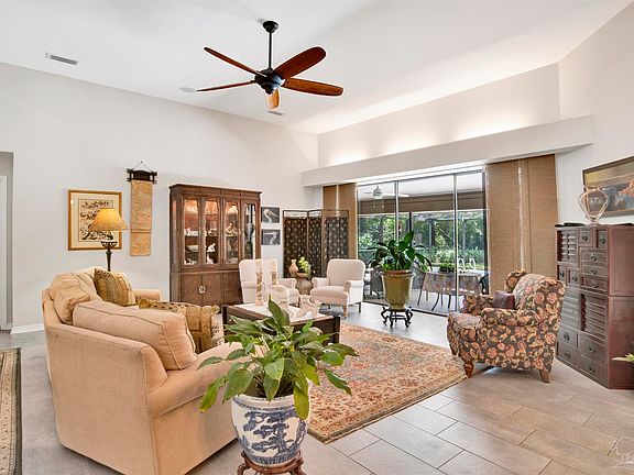 This Arthur Rutenberg designed showplace pool home (gunite, caged, large covered area with wet bar) is perfect for a large family and/or entertaining with numerous gathering areas both inside as out with privacy being nestled amongst mature trees on a corner cul-de-sac parcel of over .6 acres. Aggregate circular drive and front porch welcome one to this remodeled/update (by renowned Jansen construction) split plan of over 2900 sqft. One enters to the living room and formal dining space that draws one to the lanai/pool deck thru accordion sliders. The remodel kitchen features ample granite counter space, an island, custom cabinets (soft close drawers, pull our shelves), pantry closet, Bosch dishwasher, and tile backsplash that opens to the nook and den/keeping room (fireplace/raised hearth) with lanai views. Off the kitchen is the oversized utility room with deep sink and cabinets leads to the deep garage (over 600 sqft with a pedestrian door/workbench space). The Master suite is an oasis with 12' ceilings, slider to the pool deck, walk-in tiled shower with glass door, soaking tub, water closet room, 2 closets, granite counters, and Hunter Douglas window coverings. There is a formal office with a closet and powder room in the alcove. Bedrooms 2 and 3 are on the other side of the home with an updated full bath (walk-in tiled shower with glass door and bench, two sinks). The grounds are a plethora of lush native plantings providing privacy and shade. Other niceties include; irrigation with a well pump, landscape lighting, a fire pit space, slate path to patio sitting area, a new Roof and HVAC in 2022, termite contract, central vacuum, 28'x11' covered Lanai, and custom closets.