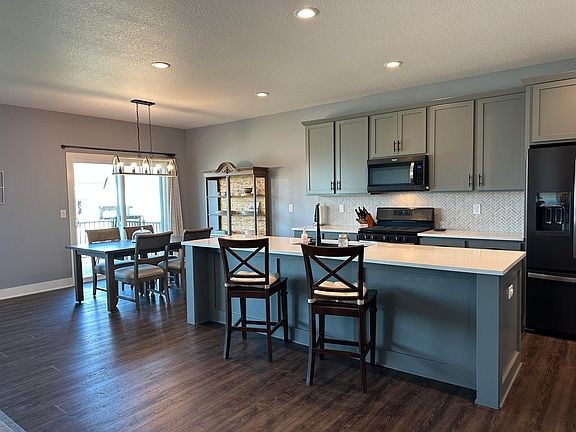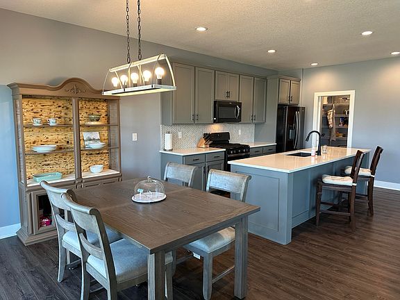 The double door entry adds to the beautiful curb appeal as you enter this modern home. Large windows throughout floods light into each room, showcasing the 9' Ceilings. Spacious open living and dining area, large kitchen with painted cabinets and island with quartz countertops. Walk in kitchen pantry with more than enough space for your family.. The master bedroom offers lots of privacy with bedrooms 2 located on the opposite side of this great floor plan. Drop zone with bench seat is located off garage. Laundry room passes through to master closet. Main floor pocket office off the entry hallway. Walkout lower level with family room, bedrooms 3 &4 and a spacious office/exercise room with egress window.