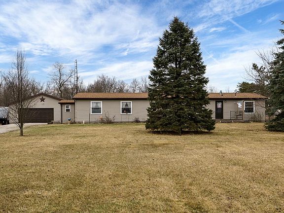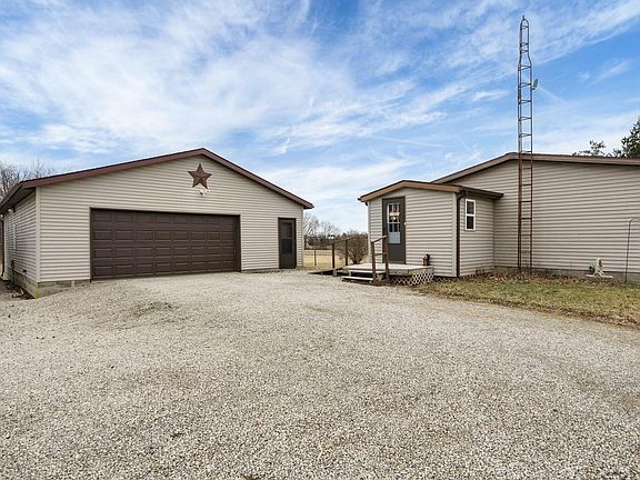 Experience the ease of one-story living on 1.52 acres with this well-maintained modular home on a foundation. Offering a blend of open-concept and defined living spaces, the kitchen flows seamlessly into the spacious family room and features a walk-in pantry for added convenience. A separate living and dining area provide additional space for entertaining or everyday living. The primary suite is a private retreat with a walk-in closet and an updated bathroom, featuring a walk-in shower and dual sinks. Laminate flooring extends throughout all three bedrooms, offering both style and durability. For those in need of workspace or storage, the property includes a 40x30 detached garage with a heated and cooled workshop, along with two additional sheds (12x12 and 8x10). Situated on a spacious, flat lot, this home provides privacy while remaining conveniently located.