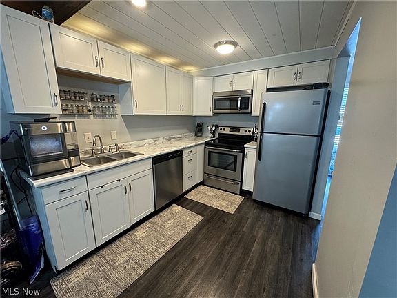 Upon entering you’ll find vinyl-plank flooring throughout the whole 1st floor, a completely renovated kitchen, your half bath, and spacious living area. Off your living room you’ll find a slider to your updated concrete patio in the rear yard. 2 large bedrooms, a full bath, and plenty of closet space awaits you upstairs. Downstairs you’ll find your full basement with painted concrete and lots of possibilities! All Stainless-Steel appliances stay and washer/dryer also convey. There are two assigned parking spots for this condo and plenty of guest parking throughout. HOA is $172 a month and includes water and trash removal, among the usuals (please see MLS for full list of what HOA provides!). Great proximity to Kent State University! Schedule a showing today and see all this condo has to offer!