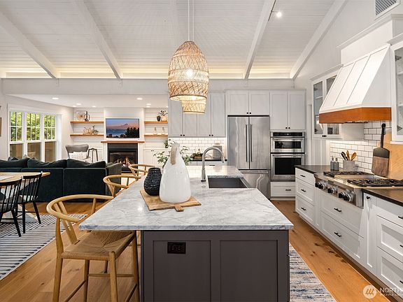 Rare custom rambler in the heart of the coveted Norkirk community. Completely reimagined in 2016, this exquisite property offers a sundrenched interior w/soaring ceilings & sophisticated designer finishes. Timeless covered front porch opens to reveal an inviting floorplan centered around a large great room w/chef’s epicurean kitchen & dedicated living/dining areas. Huge multi-slide doors seamlessly blend indoor & outdoor living spaces, providing access to an expansive covered patio perfect for effortless entertaining. Incredible location in one of the premier communities on the entire eastside: just steps to Crestwoods Park & award-winning Lake WA schools, w/easy access to vibrant shopping/dining, DT Kirkland waterfront & Juanita Village.