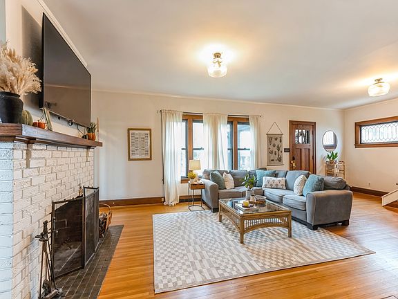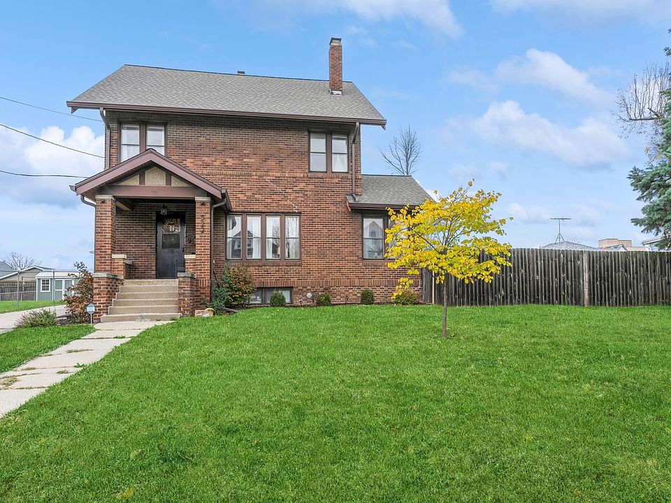 Welcome to this beautiful 2 story, 5 bed, 2 bath, brick home boasting over 2400 sq ft! This well-maintained home features gorgeous woodwork and hardwood floors with tasteful modern updates. Step inside to the warm and inviting living room with a fireplace, high ceilings and abundant natural light. From the living room, gorgeous original glass doors lead into the formal dining room. Convenient slider steps out to the deck & patio areas. Enjoy morning coffee in the 4 season room. Bright updated kitchen features painted cabinets, quartz counters, farm sink and walk-in pantry. First floor bedroom adjacent to the three fourths bath offers great flexibility! Plus, laundry with laundry chute. Upstairs find 4 generous bedrooms with good-sized closets and a full bath. The semi-finished attic offers additional living space and would make a perfect family, playroom. Do not miss the finished lower level with custom bar! Private, fully fenced yard plus low maintenance exterior. Oversized garage with plenty of space to turn around so you never need to back-out of the driveway. HVAC new in 2022, plus many newer windows. Do not wait, call for your private showing today!