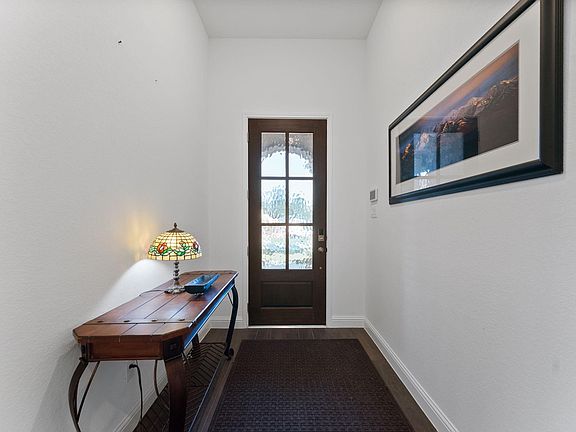 Thoughtfully designed and built with exceptional quality, this home is tucked away on a private 1/3-acre lot backing to peaceful woods, offering privacy and natural beauty. As energy efficient as it is beautiful, it features spray foam insulation, Energy Star appliances and stylish modern touches throughout, including $13,000 of automated blinds. Inside, the open, light-filled layout includes a private study, gourmet island kitchen with upgraded 42" cabinetry and sleek quartz countertops and a spacious family room with a wall of windows and custom niches framing the fireplace. The primary suite is a true retreat with a spa-inspired walk-in shower and impressive custom closet, while two generously sized secondary bedrooms and a full bath complete this split plan. Outdoors, enjoy lush landscaping with a 19-zone irrigation system, a large backyard for play or relaxation, plus ample parking and storage with an attached 2-car garage, a detached single-car garage and an extended driveway.