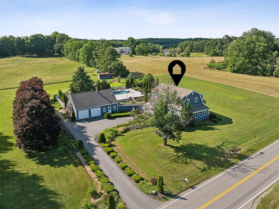 Hidden in the pastureland of north Saco you'll find 522 Boom Rd. A magical garden-laced home of tranquil beauty. The spacious home is situated on just over 2 acres with a large in-ground terraced pool surrounded by ornate shrubs and trees. Connected by deck and patio you will walk to an oversized 2 car garage measuring 16 X 26 equipped with an office, ½ bath, and second floor end to end work space for whatever you can imagine. Ideal for an in-home business or remote workspace. The kitchen has rich cherry cabinets which accent the new quartz countertops along with a gas cooktop, Viking refrigerator, and a separate wine fridge. Check out the formal dining room with hardwood floors that opens to the newly remodeled living room with views of pastureland. The first floor offers an option of a primary bedroom with built-ins, and a fully remodeled full bath with tiled shower or a home office/library with full bath, you get to choose. The second floor offers 3 or 4 generous bedrooms and 2 full baths. The lower level is finished with a family room, walk-in pantry and bonus space for a home gym or whatever your need proposes. The large expansive grounds also offer two outbuildings for chickens, ducks, etc. Make your dreams a reality here on Boom Rd.