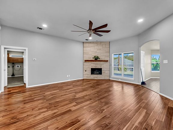 This tastefully updated home is positioned on around a third of an acre located at the end of a dead-end street and features multiple outdoor living spaces with covered back patios, a deck, and a pergola. Bring your hobbies or remote work and take advantage of the oversized two car attached garage, the two car detached garage, AND the 20x12 workshop with electricity. The fourth bedroom could also function as an in-home office. Choose your own electricity provider as this home is not on the Weatherford co-op and is free from HOA restrictions. Recent updates include windows (2023), roof and gutters (2023), spacious renovated kitchen and primary bath, and energy-efficient spray foam insulation. Custom features like the engineered hardwood floors, upgraded stone fireplace, granite countertops, walk-in shower, custom iron fence, and bay windows provide elevated character. Gas lines to the kitchen and laundry allow options for either gas or electric appliances and the split-bedroom layout provides an added layer of privacy. The exterior of the home is landscaped, irrigated, and is equipped with Jellyfish lighting that will convey. Located only about a ten minute drive from Weatherford's Costco, HEB, and charming downtown, this home offers comfort, convenience, functionality, and elevated design that makes it a true stand-out in today's market. Schedule your showing today to see all the features this home has to offer!
