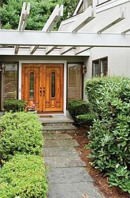 Spectacular Contemporary style home on one on Newton's loveliest streets. Vaulted ceiling entry, open floor plan, beamed ceilings. Living room with floor to ceiling stone fireplace, sliding glass door from living & dining rooms to deck which overlooks mature landscaped and private yard. Wonderful skylit eat-in kitchen with stainless steel appliances and custom oak cabinets. Spacious 1st floor master bedroom with spa-like master bathroom and pocket door to office with custom built-ins. Lower Level has an additional 3 bedrooms with full height windows. Family room with fireplace and sliding door to yard. Dramatic spaces, abundance of light and beautiful views.