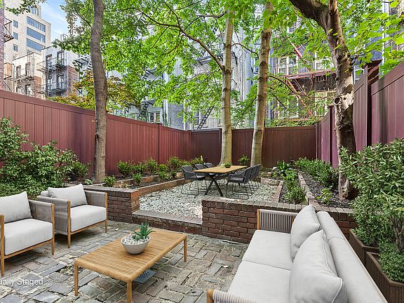 This meticulously updated duplex seamlessly blends classic pre-war charm with modern luxury. Featuring three bedrooms and two and a half baths, this home has been renovated from top to bottom while preserving its original architectural detailsthink beautiful hardwood floors, soaring ceilings, crown moldings, and designer light fixtures. The generously sized living room offers ample space for both relaxation and dining, complete with a working fireplace for added warmth and ambiance. A sliding glass door opens to your own private garden, perfect for entertaining, grilling, or enjoying quiet outdoor moments. You can even plant flowers or grow your own vegetables! The open-concept kitchen is a chef's dream, equipped with stainless steel appliances, a spacious Caesarstone countertop, an oversized sink, and top-of-the-line fixtures by Waterworks, Kohler, and Duravit. Custom cabinetry and a pantry offer abundant storage. The primary bedroom is designed to impress, comfortably fitting a king-sized bed and boasting excellent closet space. The luxurious en-suite bath features stunning marble mosaics, ceramic subway tiles, and statuary marble finishes. The second bedroom easily accommodates a king-sized bed, while the third is ideal for a queen-sized setup. Additionally, the home offers another full bath, a half bath, and a separate laundry room complete with a washer/dryer located just inside your private entrance. 522 East 82nd Street is situated on a quiet, tree-lined block just minutes from the 2nd Ave Q train. Conveniently located near shops, restaurants, and neighborhood amenities, this home offers the perfect blend of tranquility and accessibility. Please note, images are virtually staged.
