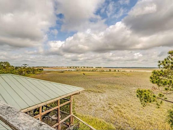 DOCK PERMIT IN HAND! Stunning marshfront retreat with panoramic river views! Perched high on a private oasis, this exceptional home offers breathtaking marsh views, stretching out to the Folly River. Nestled on the river side of a quiet dirt road, it provides maximum privacy and a serene Lowcountry setting.A pair of massive antique double doors set the tone as you enter the grand foyer, where 10-foot ceilings flow throughout the home. To the right, a sun-filled great room unfolds, featuring a spacious living area, dining area, kitchen, office nook, and a graceful winding staircase. Recessed lighting and 8-foot sliding glass doors span the river side, seamlessly blending indoor and outdoor living while capturing sweeping water vistas.The chef's kitchen includes a walk-in pantry. There is also a versatile study or guest room framed by drenching natural light. A full bath on this level boasts tongue-and-groove detailing and a custom vanity, reflecting the home's thoughtful design and character. The owner's suite is a true retreat, opening to a screened porch with mesmerizing marsh and river views. It offers a spacious walk-in closet with washer and dryer, while the owner's bath feels like a work of art with its tiled floors, open shower, large soaking tub, and antique vanity. A private deck off the porch provides yet another peaceful space to enjoy the views. Upstairs, a bright and airy flex space can serve as a studio, guest suite, or upstairs living area. Step out onto the elevated deck for an unparalleled perspective of the river, complete with a view of the historic Morris Island Lighthouse in the distance. Reinforced decking also allows for future expansion if desired. Additional highlights include covered parking and storage beneath the home, plumbing for an outdoor shower, and retaining walls. From bird watching to stargazing, every corner of this home invites you to connect with nature and savor the Lowcountry lifestyle. This is a truly remarkable property, blending timeless character with one-of-a-kind views. Don't miss the opportunity to make it yours.