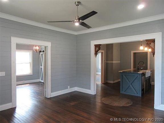 Cute! Cute! Cute! This Two bedroom Two full bath home is located in South McAlester. When you step inside you can see all of the nice work updating this home that has been completed with finished hardwood floors, some laminate flooring, barn doors, new bathrooms with new fixtures Tile work etc. Nice open concept Living and Kitchen with nice sized island and nice gas stove which flows into a nice butlers pantry. The backyard is fenced, concrete driveway that goes to a detached Garage behind the house offering you a place for your vehicle or a nice workshop. There are a few little cosmetic projects that need to be finished but the big items have been taken care of such as Roof (2 years old), AC unit (2 years) flooring, updated bathrooms, you really need to see this house in person to understand everything that has been done to it. Call today to make your appointment to see this Cute little Bungalow