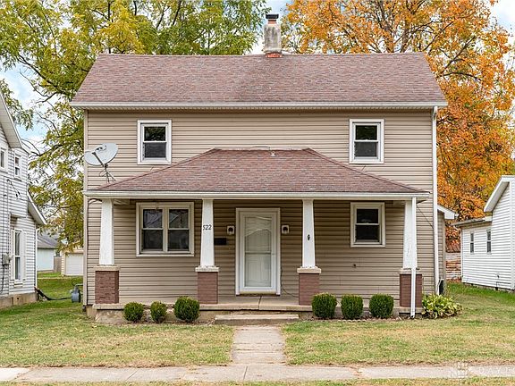 Check out this charming two-story home offering nearly 1,400 square feet of comfortable living space, featuring 2 bedrooms and 1 full bath. A welcoming front porch sets the tone for this inviting property, providing the perfect spot to relax and enjoy the neighborhood. Step inside to find a spacious living room with plenty of room for gatherings or entertaining. Off the living room the dining room (rug stays) offers a comfortable space for meals and leads directly into the eat-in kitchen. The kitchen includes both the range and refrigerator, which will stay with the home, and provides ample cabinet and counter space for everyday use. Just off the kitchen is a versatile flex room ideal for a home office and connects conveniently to the full bath. Upstairs, you'll find two nicely sized bedrooms. The home also includes a partial basement, perfect for additional storage or a small workshop area. Outside, the property features a nice-sized backyard with alley access, offering the convenience of off-street parking. Major updates were completed in 2014, including the furnace, central air, water heater, windows, and kitchen appliances, adding peace of mind and energy efficiency. Conveniently located near the high school, this home combines comfort, character, and convenience making it a great opportunity for those looking for their first home, an investment property, or a cozy downsizing option.