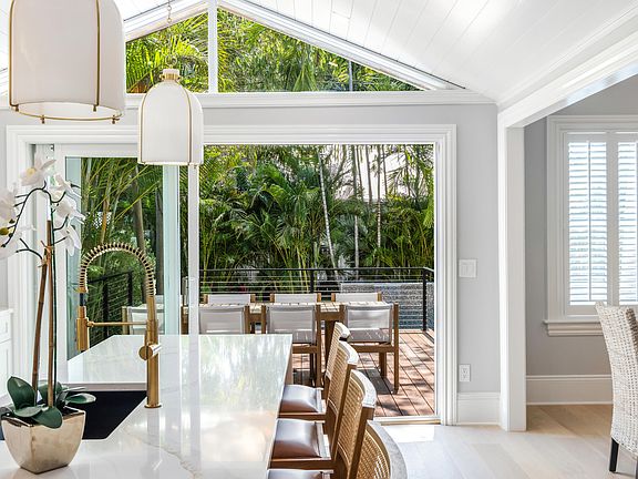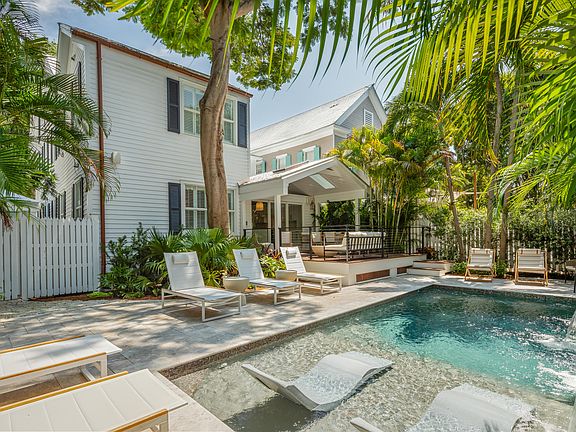 Introducing 522 Elizabeth Street, a fully reimagined Key West masterpiece offering 6 bedrooms, 6.5 bathrooms, and over 3,000 sq ft of luxurious living space. Just 2 blocks from vibrant Duval Street, this rare gem combines historic charm with modern sophistication. The home has been meticulously rebuilt with all-new concrete footings, structural lumber, impact windows, copper gutters, a brand-new roof, two 5-ton A/C units, dual washers/dryers, and much more. Inside, the layout has been entirely redesigned with award-winning David L. Smith Interiors curating a stunning decor.Upon entering the home, you're greeted by elegant three-piece base and crown molding- setting the tone for the home's attention to detail. The first floor features a spacious primary ensuite bedroom with a custom walk-in closet, Italian glass tile accents, a floating double vanity, a walk-in shower, and a fully automated Kohler toilet. A beautifully appointed living room leads to an additional ensuite bedroom and the show-stopping gourmet kitchen. This culinary space boasts Viking appliances, quartz counters, and a massive waterfall island perfect for entertaining.Step outside to your private oasis, featuring a new Gunite pool with a large sun ledge and 4 custom waterfalls cascading from a glass mosaic wall. The professionally landscaped yard is complete with mature trees and a 6-zone irrigation system. The expansive IPE deck with a covered outdoor dining area is the ideal backdrop for island living and entertaining. Upstairs, the home offers another primary ensuite bedroom with spiral stairs that lead to loft storage. The 3 additional ensuite bedrooms each offer their own unique charm- some with treetop views, Italian porcelain, or private balcony.This residence epitomizes luxurious island living with two off-street parking spaces and a carport for added convenience.Don't miss the opportunity to make it yours- schedule a private showing today!