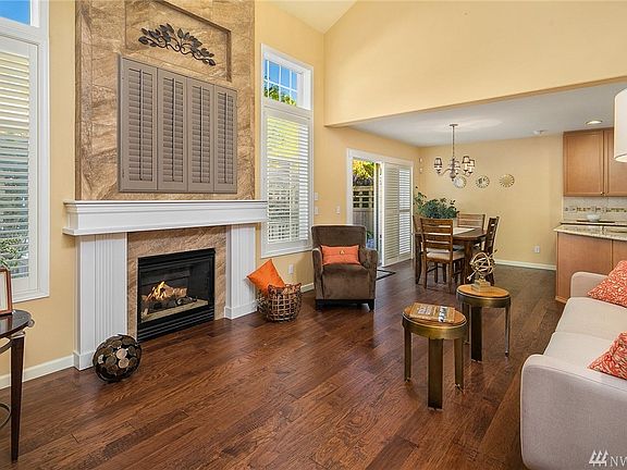 Come Home to Blueberry Place- a quiet, private, gated community. This townhome has a great floorplan w/ 2 Master BR suites & a Main fl den! Beautifully updated w/ engineered hardwood, designer tile & granite in baths & expensive plantation shutters throughout! Upgrades: Den w/ built-in desk & cabinets, beautifully tiled fireplace, tiled backsplash, granite & SS in Kitchen, MA BR California Closet & more! Enjoy the spacious Trex deck & your private fenced yard! One Block to Starbucks & QFC!