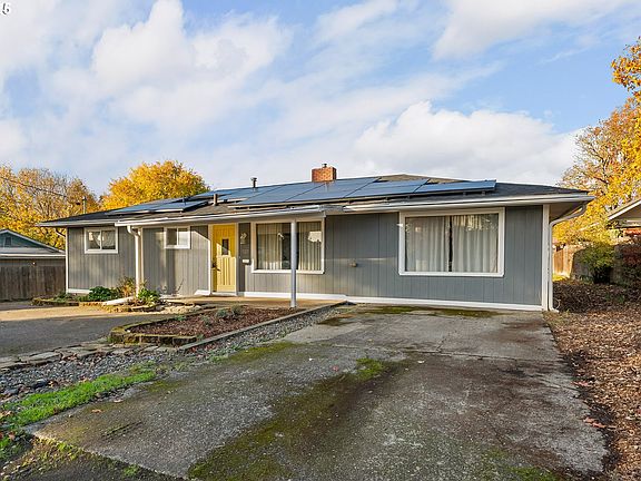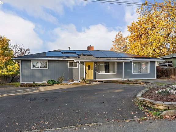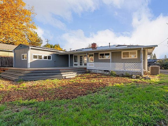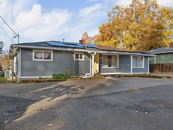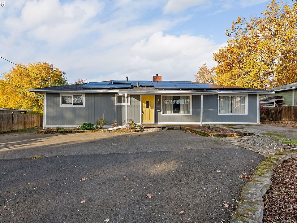 WOW! Tucked away on nearly half an acre in the heart of town, this 4-bedroom, 2-bath, 1716 sq ft home delivers that “country feel” without giving up the convenience of city living. The oversized lot offers space for your toys, garden, or even potential development of ADU, second home, or duplex (buyer to verify with city planning). The home’s fresh exterior sets the tone with newer siding, paint, roof, and solar panels for energy efficiency and peace of mind. Solar panels are included in the purchase price and owned outright, helping you save money on utility costs. A large driveway adds great curb appeal and plenty of parking, while the covered front porch gives a warm welcome. Inside, a light-filled, open-concept layout brings together the living, dining, and kitchen areas. The fully remodeled kitchen is both stylish and functional, featuring quartz countertops, stainless steel appliances, open shelving, tile backsplash, and a large island with bar seating. The electric fireplace adds a modern touch of comfort, complemented by newer luxury vinyl plank flooring and updated fixtures throughout. The layout features three bedrooms and one bath on one side, with a private primary suite and an additional bedroom on the other. Hardwood floors in the bedrooms add a timeless touch, and the home’s forced air HVAC keeps things comfortable year-round. Out back, a covered patio and expansive deck overlook the fenced yard—perfect for entertaining, play, or simply enjoying the open space. A hard-to-find combination of updates, space, and location, this property blends practicality with potential in a setting that feels like home. Schedule your private tour today!