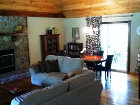 This home is in a very peaceful setting. It is 5 miles to town or to the boat ramp! The home features hardwood floors and a stone fireplace that set the mood for the home. It has a covered porch in front and a covered deck in the back that are perfect for outdoor entertaining. It has an open floor plan perfect for entertaining inside as well. It also has a full walkout basement for extra space!! Don't miss out on this one!