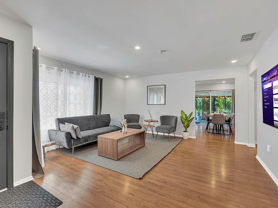 Guest bedroomsPrivate backyardClimate controlCommunity poolVersatile living spacesQuiet residential streetScreened-in patio