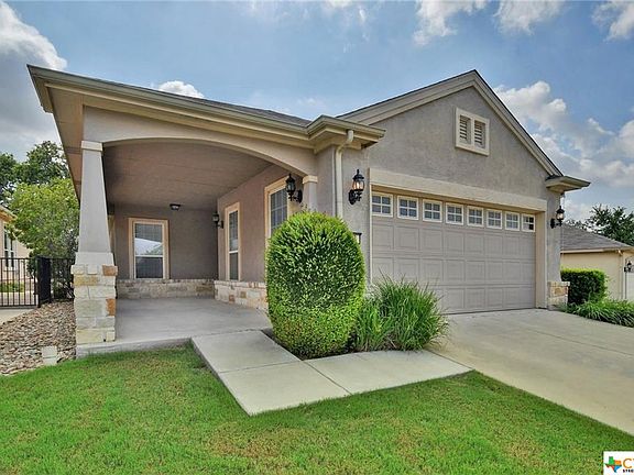 Check out this listing before you buy new! Nice Courtyard Series home in a quiet area of Sun City. This San Saba plan has large covered front and back porches. The layout is efficient, with no wastes space. Features include stucco with stone accents, irrigation system, fully wrought iron fenced for pets, a sparkling kitchen with breakfast bar and nook, a dining area and nice views through the living room. Sun City is an age restricted community for active adults located in the charming City of Georgetown. Sun City Amenities are numerous including golf, fishing, clubs, tennis, swimming and more.