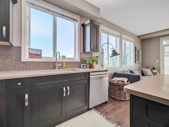 Welcome to this beautifully appointed South facing corner condo in the heart of Cranston! This 2 bedroom, 2 bathroom + den home offers nearly 1000 sq ft of thoughtfully designed living space, perfect for professionals, downsizers, or investors. The modern kitchen is truly the heart of the home. Featuring new stainless steel appliances, stone countertops, and a generous island ideal for entertaining or casual dining. The open concept layout flows effortlessly into the dining area and bright living room, where sliding doors lead to a large, covered patio overlooking the quiet courtyard making it the perfect space for your morning coffee. The patio is complete with a BBQ gas line making it perfect for summer evenings. The primary suite boasts a spacious walk through closet with custom built in shelving, leading into a well appointed ensuite bathroom. The second bedroom and main bath are on the opposite side of the condo making it ideal for guests or roommates. The den offers the perfect work from home setup, creative space, or extra storage. Enjoy secure, heated underground parking and an assigned storage unit directly in front of your parking space. Located close to shopping centres, the South Health Campus, Seton YMCA, and an abundance of walking and biking trails with stunning natural views, this home offers the perfect balance of comfort, convenience, and lifestyle. Don’t miss your chance to own in one of Calgary’s most desirable communities!