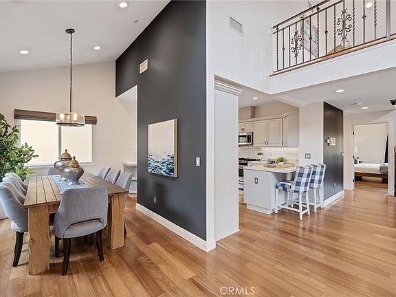 Located in this desirable neighborhood nook on the edge of South Redondo and Hermosa Beach, this bright, open, airy and stylish rear-unit, detached townhome is the quintessential beachy lifestyle dream. West of PCH, just a stones throw to the Sand & Hermosa Strand, quietly tucked away in this family-friendly neighborhood pocket, your search for the perfect home that has literally everything within arms reach, ends here! Massive cathedral ceilings on the top level living floor highlight an open concept layout that offers tons of natural light, great flow and expansive volume that’s sure to impress.  The remodeled chef’s kitchen, complete with quartz countertops and custom cabinets, is oriented nicely over a bar seating peninsula that carries seamlessly toward the living room (fireplace and balcony) and adjacent formal dining room area. A large loft overlooks this scene and adds a cool touch of character with a variety of options for use as an office / yoga zone / play space and more.