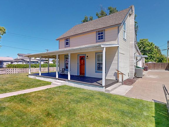MLS# 284868 Welcome to this beautifully preserved 3 BD 2 BA home blending timeless character with modern updates. This home greets you with a classic wrap-around front porch, low-maintenance vinyl siding, and a rare two-car attached garage. Step inside to find a formal living and dining room filled with natural light, hardwood floors, and charming vintage details like original doorknobs. The spacious kitchen features a stylish tile backsplash, stainless steel appliances, and convenient access to the laundry room through a sliding barn door. The main level offers a comfortable bedroom and full bathroom, while upstairs you'll find two additional bedrooms and a 3/4 bath—perfect for guests or a growing family. A large unfinished basement provides ample storage space or room for a workshop or hobby area. All appliances are included, making this home move-in ready. A true gem for anyone looking to own a piece of Kennewick history with the comforts of modern living!