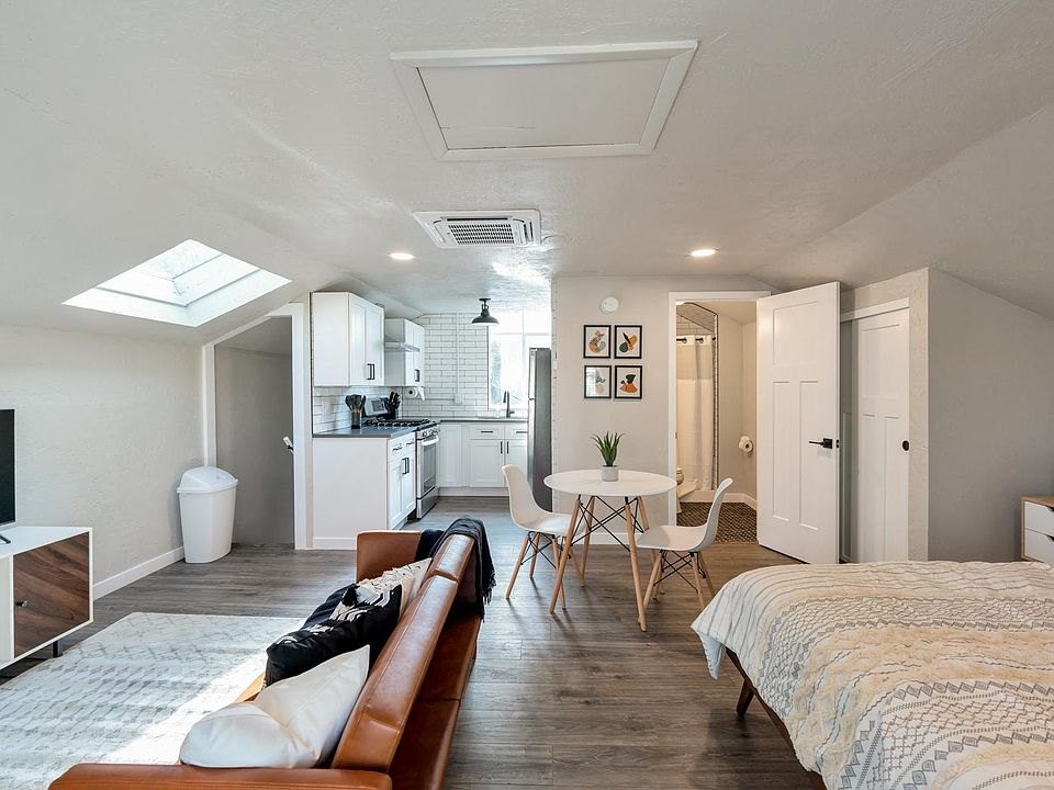 Available now is a fully furnished studio carriage house in the beautiful Alimo Placita neighborhood in Denver. A dedicated parking spot just a few steps away from the entry door. A shallow garage is provided for storage. Dedicated Laundry within the unit. A/C provided.