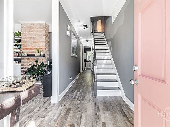 Character, charm, and exceptional care define this stunning townhome in the Beach Institute area of Savannah’s Historic Landmark District. From the inviting foyer with its original staircase to the 10’ ceilings and elegant living room featuring built-in bookcases and one of four original brick fireplaces, every detail reflects timeless appeal. The spacious dining room, also with a fireplace, overlooks a rare, screened porch and fully private, partially shaded, brick courtyard. The kitchen offers a newer range and dishwasher plus a convenient half bath on the main level. Upstairs, hardwood floors flow throughout the primary suite with fireplace, generous closet space, dressing room, and an ensuite bath with double vanity and clawfoot tub. The second bedroom doubles as an office with its own fireplace and ensuite bath. Enjoy comfort with new upper HVAC 2025, New Roof 2021, and newly painted exterior 2025. All within walking distance to Forsyth Park, shops, restaurants, dog park, and more