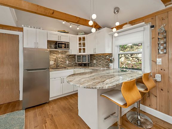 One of the nicest studio condo in Hampton. Fabulous location in between Hampton Beach and North Beach, walk to both beaches, ocean, downtown Hampton. Extremely low condo fee of $225/mo includes gas heat/hot water, electricity, water/sewer, trash removal and basic cable! The unit has been transformed into an oasis of high end finishes and comfort. It comes fully furnished including a contemporary style queen Murphy bed system with attached bookcases, pull out night stand, cable outlets and lighting. Lighted wardrobe with pull out drawers and shoe tray. Gorgeous kitchen with granite and peninsula, in counter ceramic built-in stovetop, linear glass backsplash, microwave, Frigidaire refrigerator and freezer, countertop convection over. Vaulted ceiling with loft for storage or extra sleeping space. The bathroom is absolutely stunning! From the Polish porcelain floor, to the banjo-style quartzite vanity, porcelain sink, 50” built in mirrored cabinet, for lots of storage to the gorgeous double sized shower featuring glass door, glass tile Soho, seagrass floor with custom starfish drain, and built in niche. There is also a loft for additional storage or sleeping. Gorgeous sunset views of the marsh!