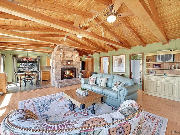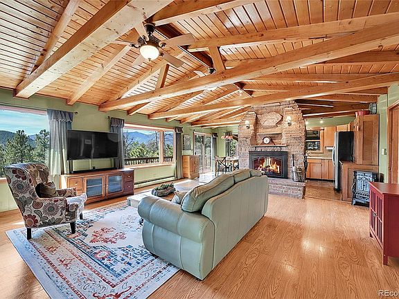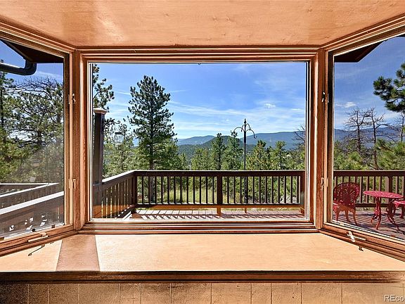 Discover the beauty of mountains living in Bailey. This charming home offers 1296 square feet of living space, boasts 2 bedrooms, 1 bathroom and an open, bright floorplan designed to bring the outdoors inside. Large, picturesque windows provide breathtaking views of the surrounding mountains, filling the house with natural light and enhancing its airy ambiance. The kitchen offers sleek countertops and stainless steel appliances, providing ample counter and cabinet space for your culinary needs. It's a functional and stylish area that any home cook would appreciate. Bright and spacious living room, with a centered fireplace that adds warmth and serves as a focal point of the room. Vaulted ceilings give a sense of grandeur and openness. The large primary bedroom includes a gas fireplace and has access to a private balcony, offering a serene space to enjoy the stunning mountain views. Full bathroom is conveniently located to serve both bedrooms, offering practicality and style. The second bedroom provides plenty of space for family or guests. The outdoor spaces are perfect for entertaining or simply relaxing in nature. A large deck offers wonderful opportunities for hosting gatherings or enjoying a quiet moment as you soak in the mountain views. Additionally, an outdoor shed provides extra storage space, useful for keeping your outdoor gear organized. Bailey provides easy access to shopping, restaurants, and recreational activities via county-maintained roads leading directly to Highway 285. It’s a community that balances the peace and beauty of nature with practical accessibility to amenities, making this home an ideal choice for those who value both tranquility and convenience.