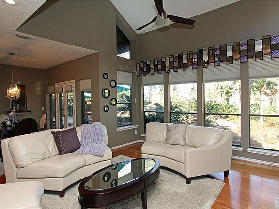 At the front of The Woodlands. Lakefront with the most beautiful and tranquil unobstructed view of Champion Lake with a front and center view of the water fountain. Very spacious lot has extensive landscaping complete with a water fall and private dock. Minutes from Market Street, Exxon Campus, I-45, and zoned to The Woodlands schools. Present owner has spared no expensive with extensive remodeling. Most windows overlook the private lake. Covered rear porch and balcony off master. Wood floors, tile,and carpet and includes two fire places. Shows beautifully and has the added bonus of The Woodlands Schools.