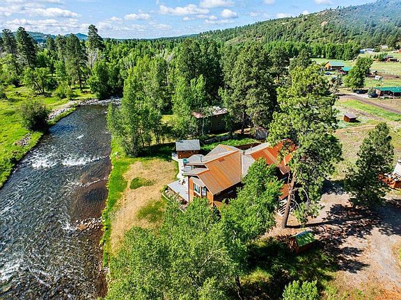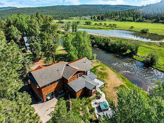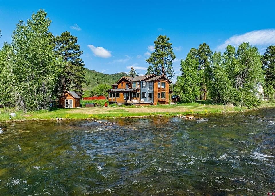 Riverside Mountain Retreat with Bunkhouse & Theater Room - Escape to your own private Colorado paradise with over 125 feet of private river frontage, a remarkable 3-bedroom, 3-bathroom mountain retreat, nestled on a full acre of lush and green land. With 3,600 sq. ft. of beautifully appointed living space, this home offers the perfect blend of rustic charm and modern comfort. Step inside and be greeted by an open-concept layout featuring a bright, spacious kitchen with wraparound counters, a cozy great room with panoramic windows, and a formal dining area perfect for entertaining. Enjoy movie nights in the dedicated theater room with tiered seating and surround sound or relax by the fire pit as the river flows just steps away. Outdoors, soak in the sweeping mountain views, relax in the private hot tub, or unwind on the expansive lawn beside the crystal-clear Pine River. A detached bunkhouse adds flexible space for guests, hobbies, or a potential rental unit. With a private garage, string-lit patio, and year-round natural beauty, this home is ideal as a forever residence, family getaway, or income-generating vacation rental. Whether you’re looking for a peaceful retreat or a unique investment opportunity, this one-of-a-kind riverside gem is ready to welcome you home.